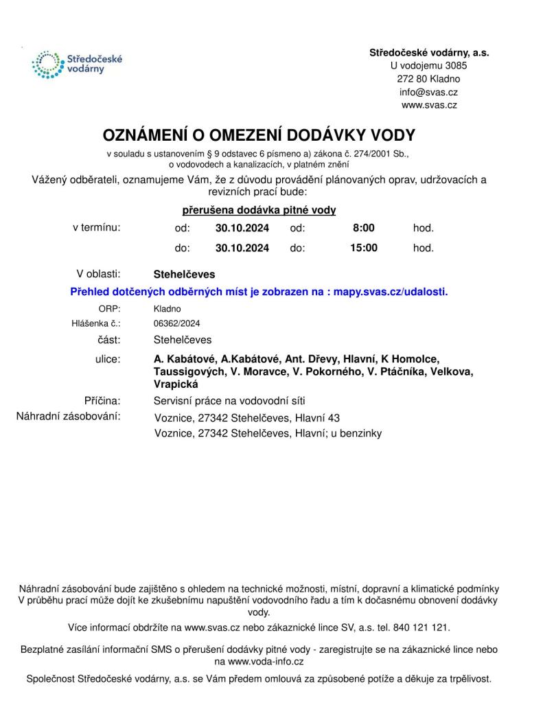 Oznámení o omezení dodávky vody